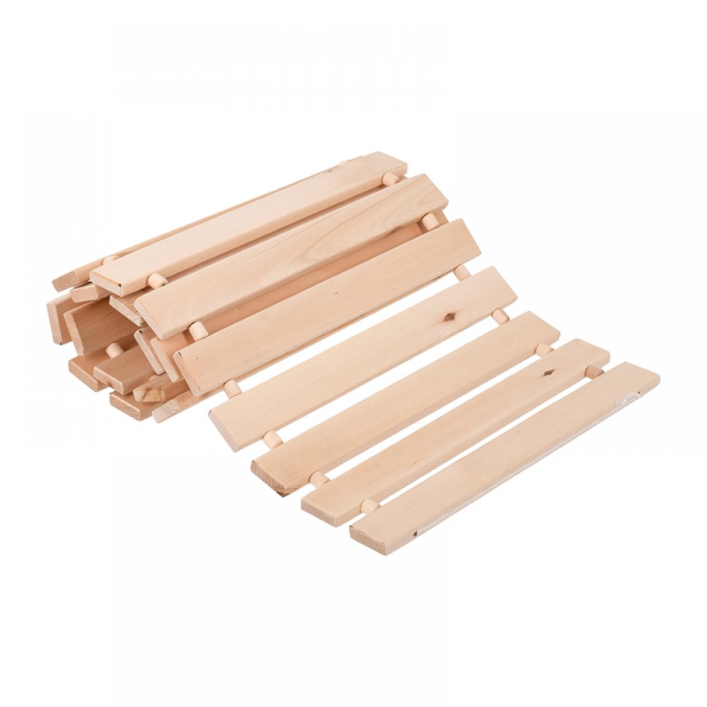 Коврик-сидушка сделан из натурального дерева - липы он защитит тело от горячих полков. Коврик лежак легко моется и сушится, а при необходимости его можно свернуть в небольшой сверток для хранения.
