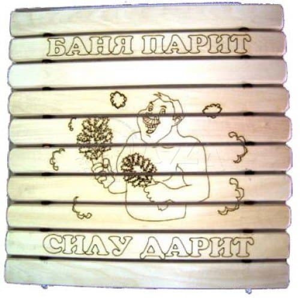 Сидушка (липа) Баня парит силу дарит с рисунком СГР-Б Предназначена для личной гигиены и защиты тела от ожогов в парильных помещениях. Изготовлена из обработанной липы.