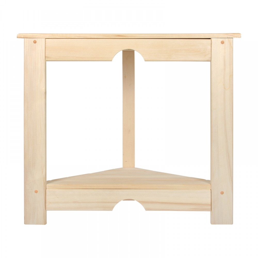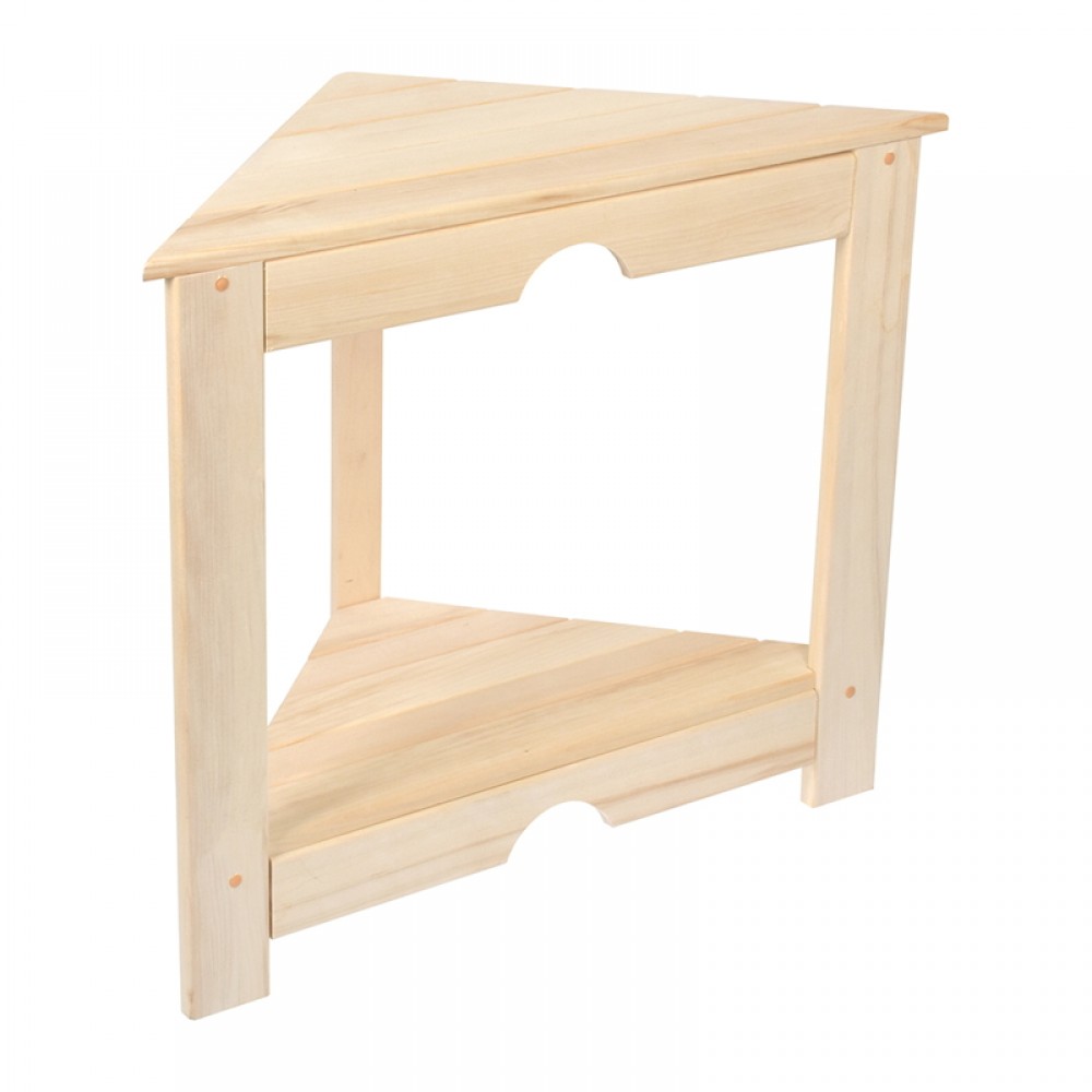 Описание Столик угловой 70х50х60см с полкой, из лиственных пород для использования в бане и сауне.