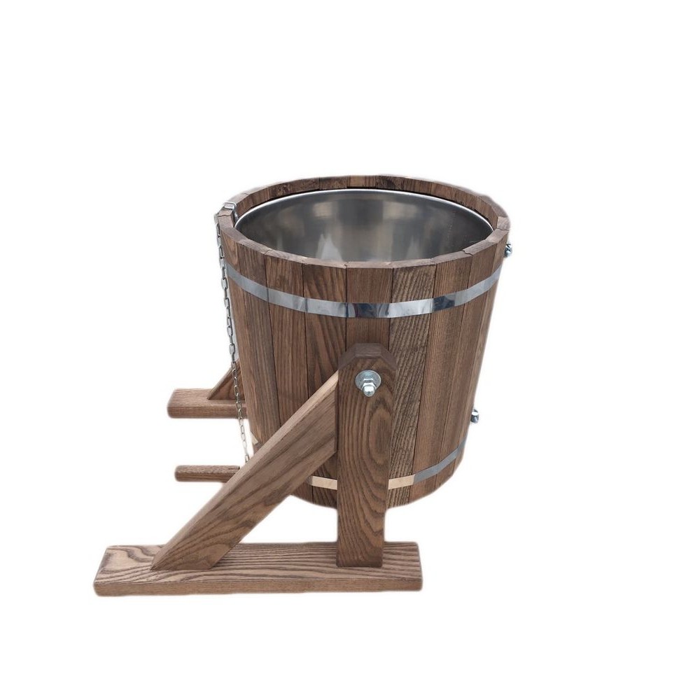 Преимущества обливного ведра на 12 литров из темного дуба с нержавеющей вставкой это: