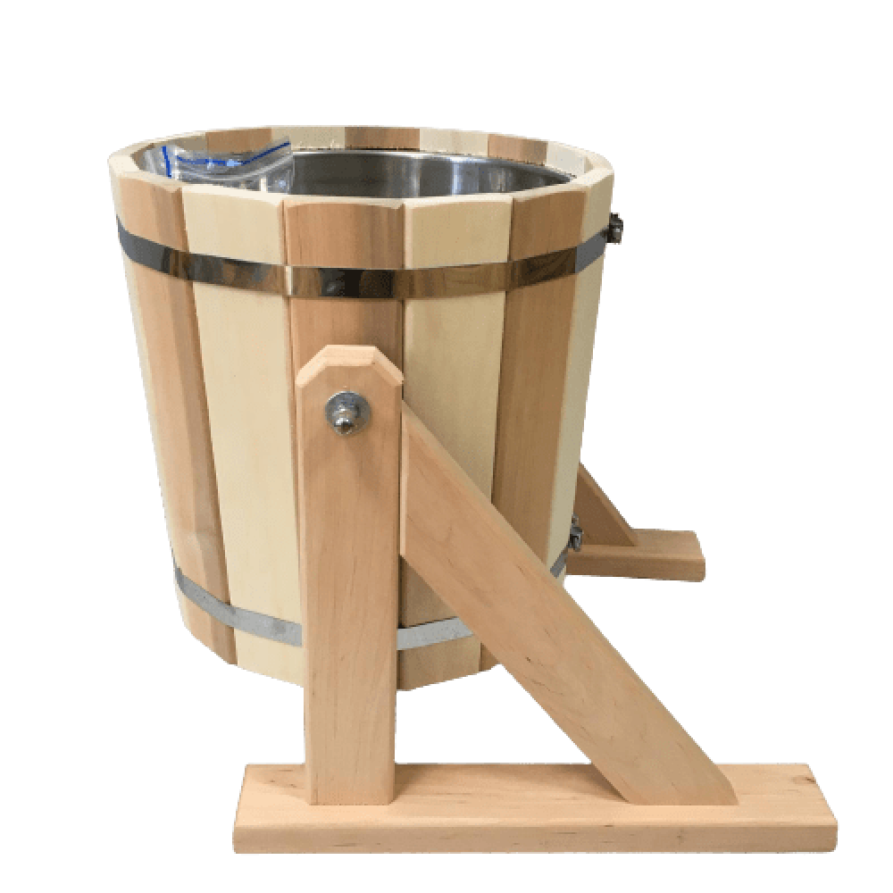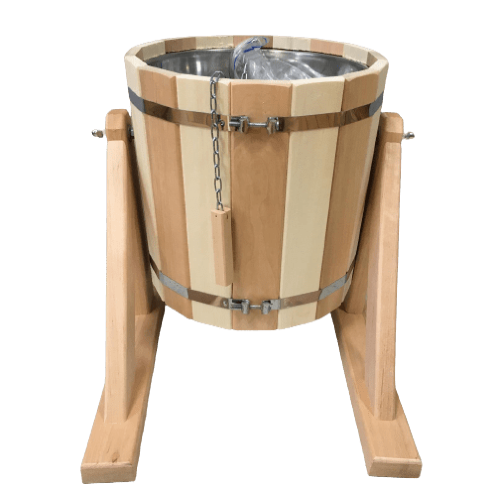— два стяжных хомута по внешнему диаметру ведра. При усыхании или расширении дерева всегда можно хомут поджать или припустить.