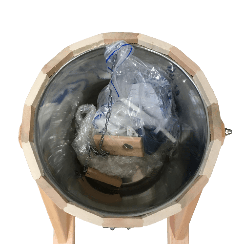 После парной большинству банщиков хочется облиться холодной водой, для одних это ритуал, для других это способ закаливания организма и духа, для третьих просто спортивный интерес. С обливным устройством это желание становиться реальностью. Вышел из парной весь такой распаренный, дернул за цепочку с ручкой и вот тебе благодать, кайф и бодрость. Самое главное попробовать, уверяем вас, эмоций и настроения эта штука придаст на все 100%. Дети вообще без ума от этого устройства. А обливное ведро из темного дуба — космос, смотрится и вписывается в любой интерьер, имеет шикарный эстетический вид.