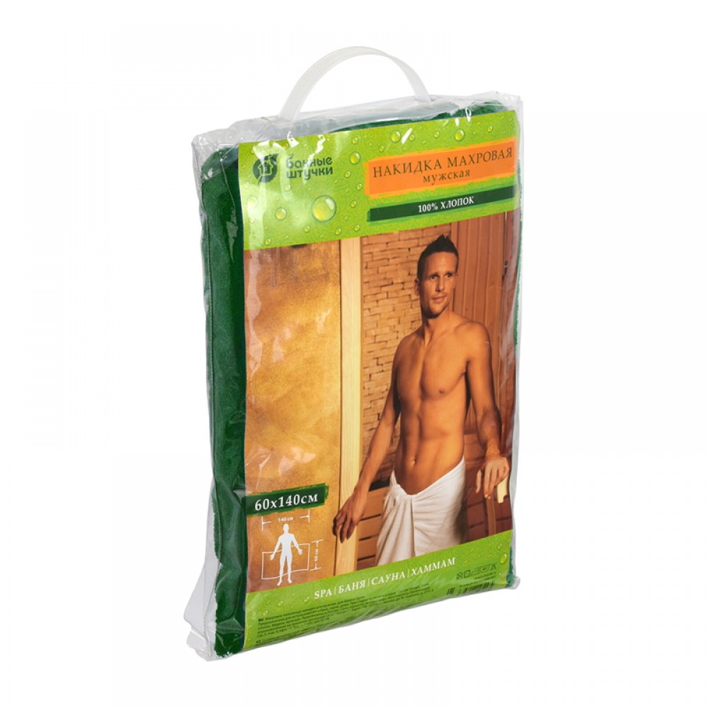 Махровый комплект для мужчин (накидка 140х60см) зеленый предназначен для использования в бане, сауне, дома. Незаменимый банный аксессуар для мужчин.