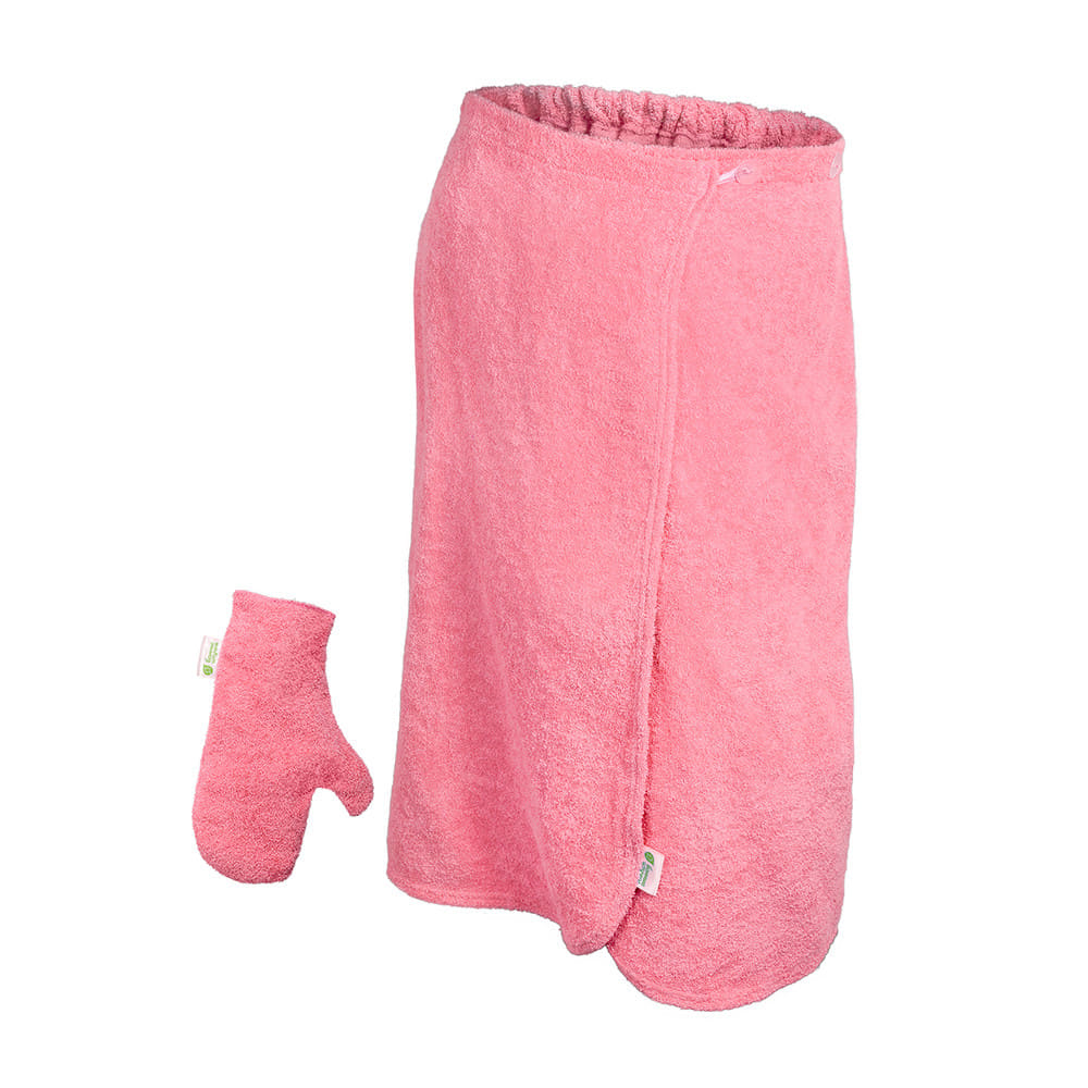 Махровый комплект для женщин (накидка 140х80см + рукавица) розовый