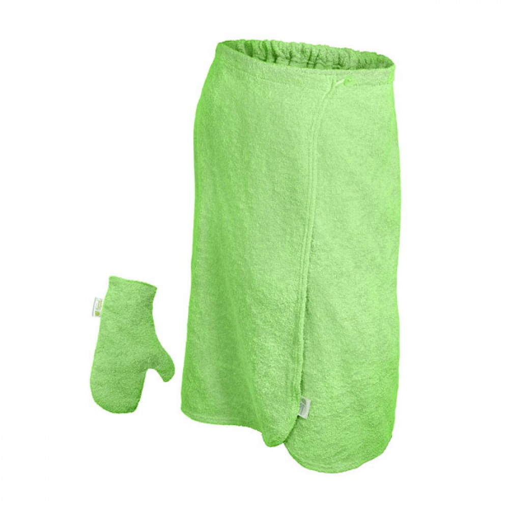 Махровый комплект для женщин (накидка 140х80см + рукавица) салатовый