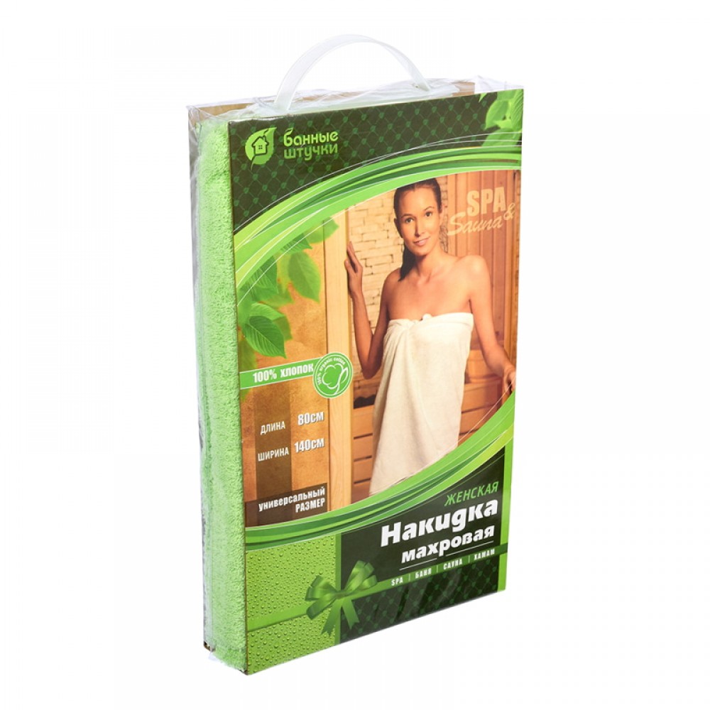Описание Махровая накидка для женщин салатовая (140х80 см) предназначена для использования в бане, сауне, дома.