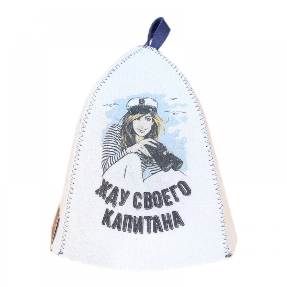 Описание Шапка банная принт Жду своего капитана (войлок)
