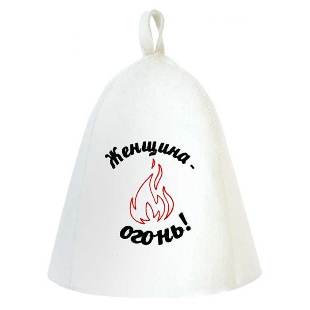 Первая цена! Оригинальная вышивка. Шапка "Женщина-огонь" арт. Б04016 сделана из иглопробивного полотна, устойчивого к высоким температурам, оно быстро сохнет и прекрасно держит форму - идеально для бани!