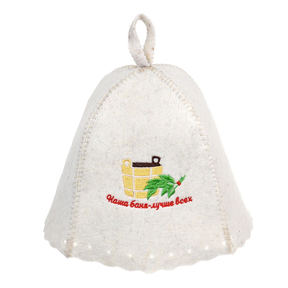 Шапка для бани и сауны "Наша баня лучше всех!" Hot Pot арт.41165 — это необходимый аксессуар при посещении парной. Такая шапка защитит от головокружения и перегрева головы, а также предотвратит ломкость и сухость волос. Изделие замечательно впитывает влагу, хорошо сидит на голове, обеспечивает комфорт и удовольствие от отдыха в парилке. Незаменима в традиционной русской бане, также используется в финских саунах, где температура сухого воздуха может достигать 100 °С.