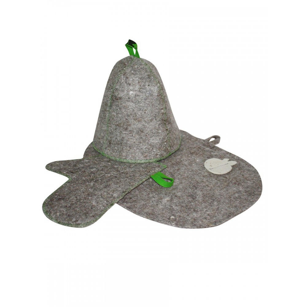 Комплект банный (шапка,рукавица,коврик), войлок серый для бани