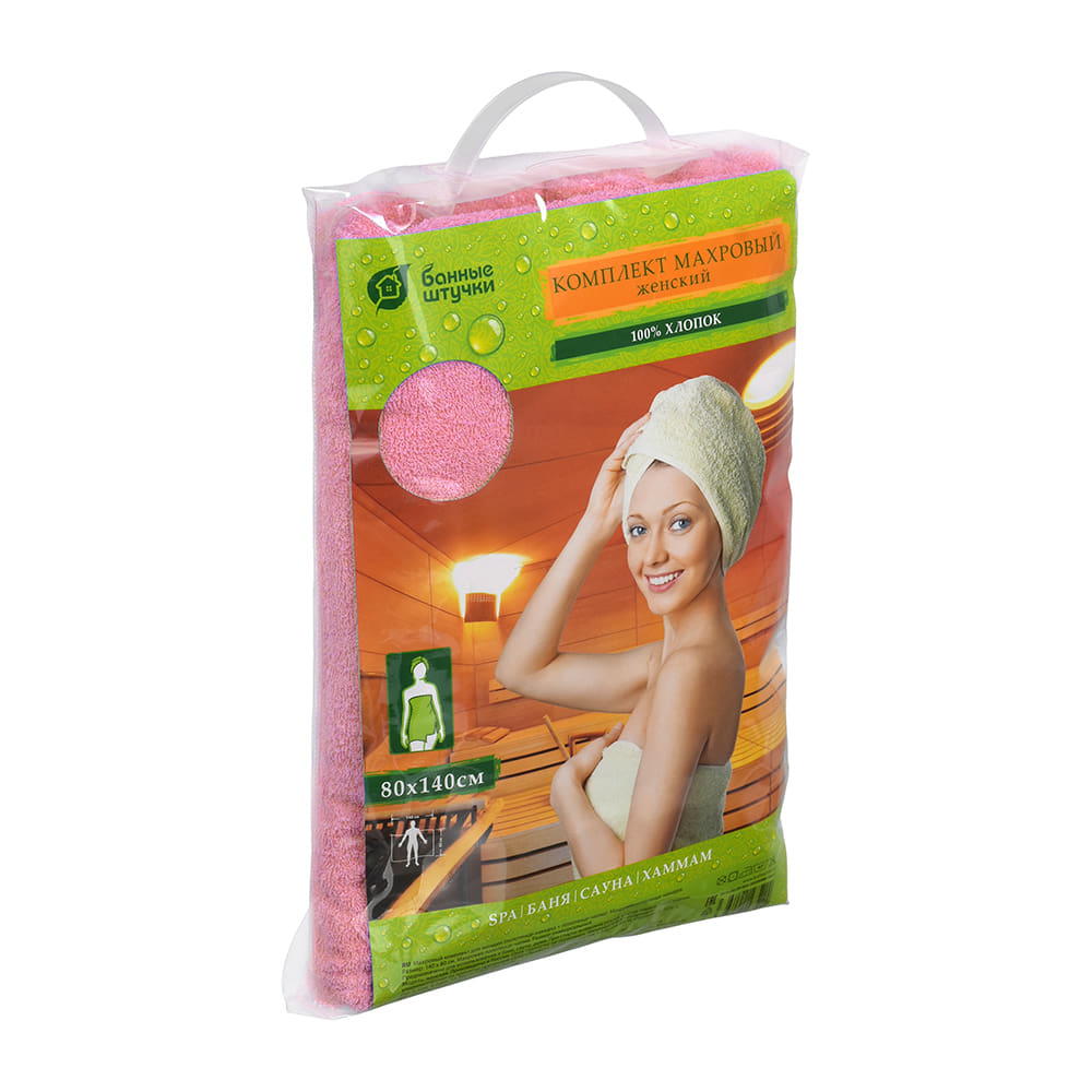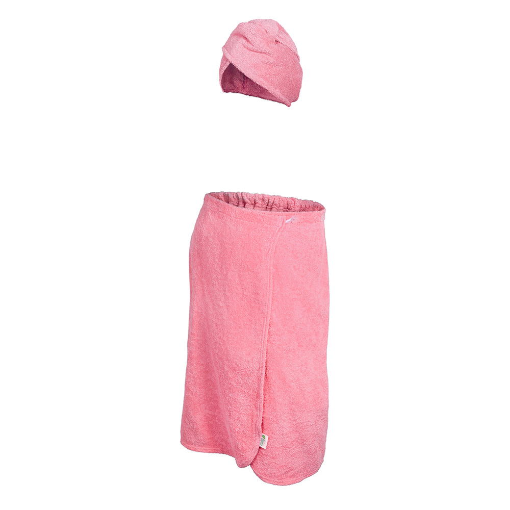Описание Махровый комплект для женщин (накидка 140х80см + чалма) розовый