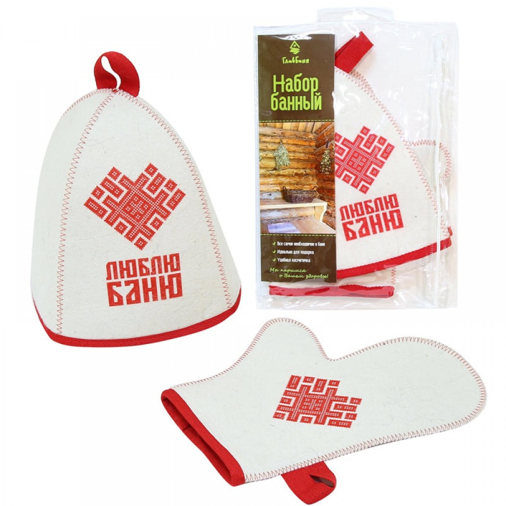 Описание Набор для бани Люблю Баню (шапка, рукавица)