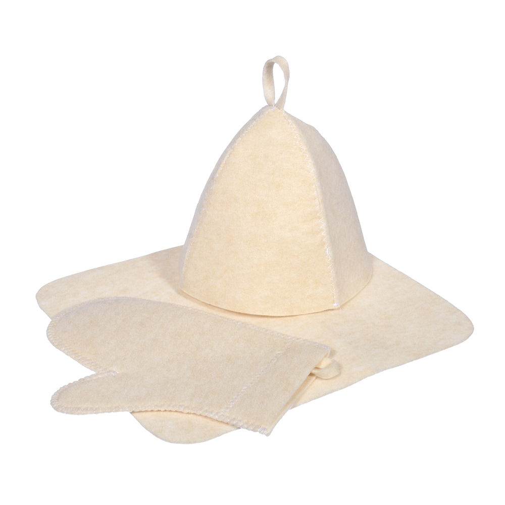 Классический набор для сауны – это коврик, шапочка и рукавица из войлока. Каждая деталь имеет свое назначение и предполагает постоянное использование во время посещения бани и сауны. Коврик убережет от ожогов в сауне, шапочка предотвратит тепловой удар и не позволит высокой температуре и влажности испортить волосы, а рукавица не позволит вам обжечься паром.