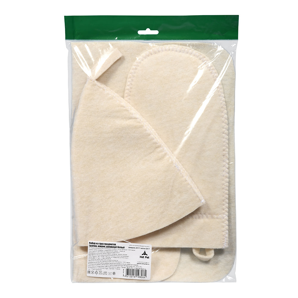 Описание Набор из трех предметов (Шапка, коврик, рукавица) белый Hot Pot