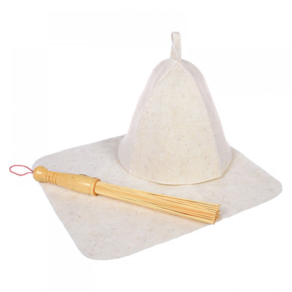 Набор подарочный 3 предмета в п/п пакете (веник бамбуковый, коврик, шапка) Банные штучки для бани