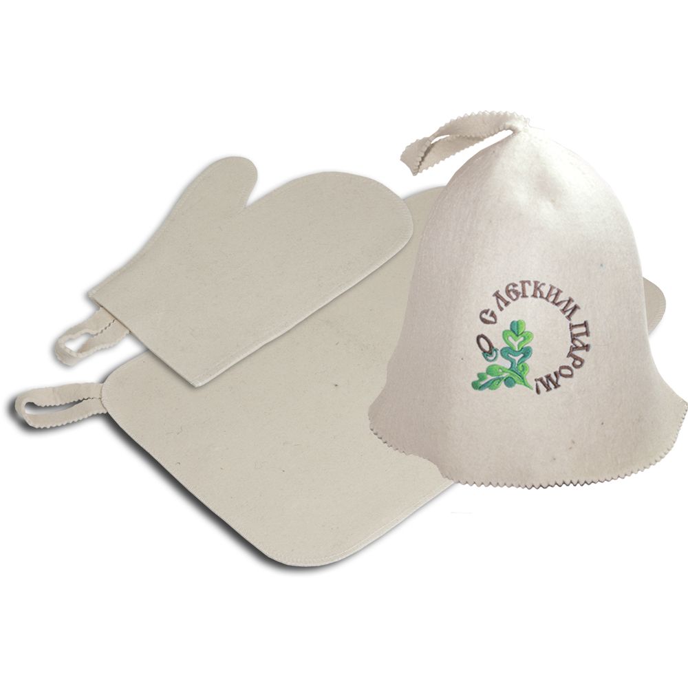 Подарочный набор 3 предмета (шапка С легким паром, рукавица, коврик) в коробке