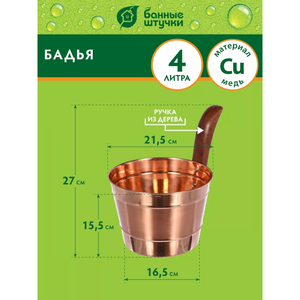 Интернет магазин Pechkoff.by предлагает купить Бадья из меди 4л Банные штучки арт. 32029 в Минске, Гомеле, Могилеве, Витебске, Гродно, Бресте с доставкой.