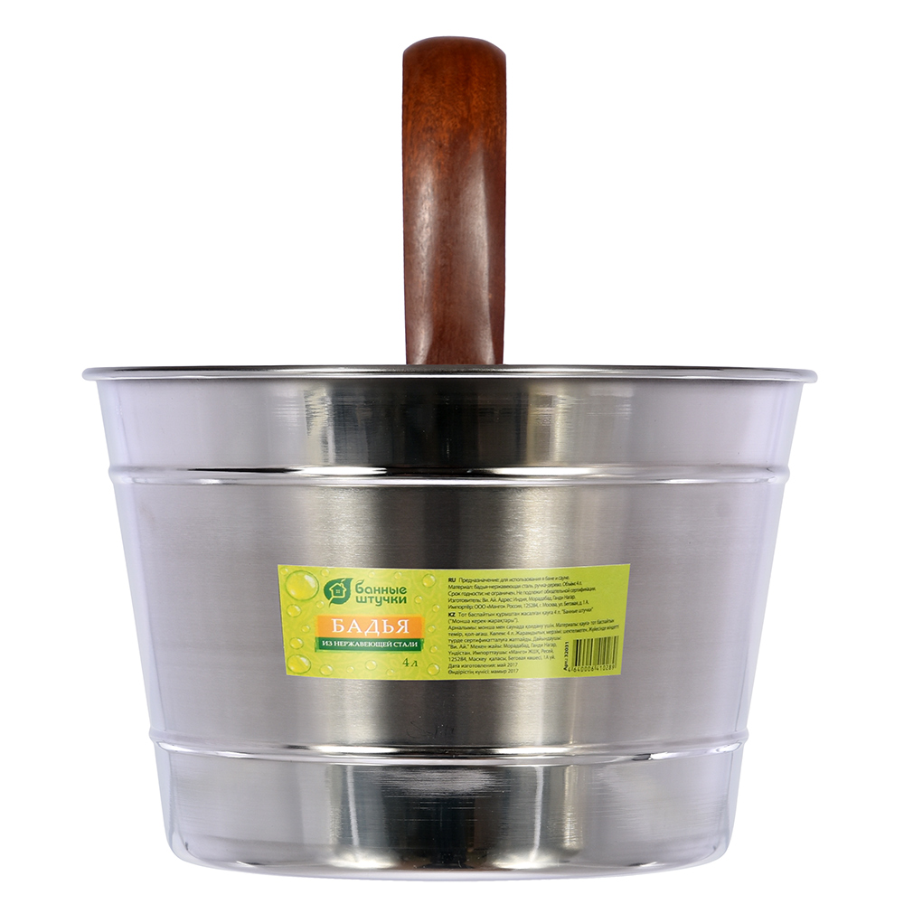 Интернет магазин Pechkoff.by предлагает купить Бадья из нержавеющей стали 4 л Банные штучки арт. 32031 в Минске, Гомеле, Могилеве, Витебске, Гродно, Бресте с доставкой.