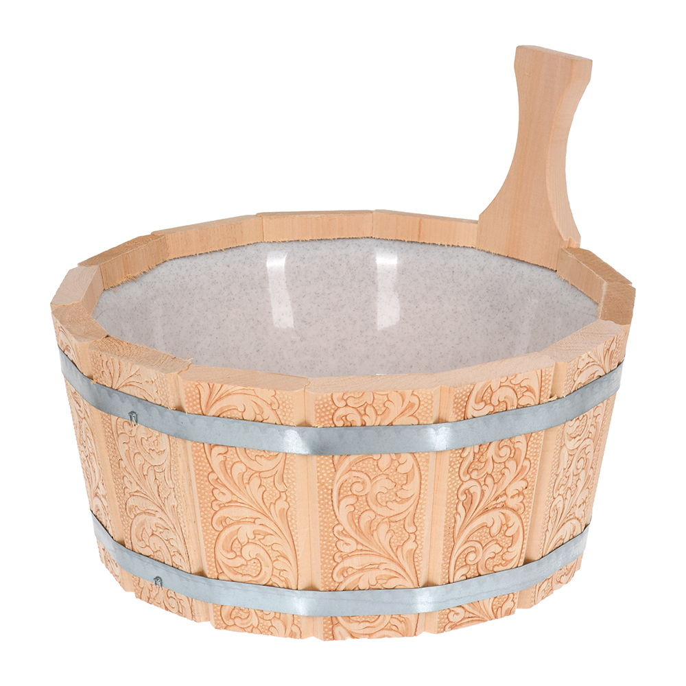 Интернет магазин Pechkoff.by предлагает купить Ушат 3,5 л, с пластиковой вставкой, с орнаментом «Цветы», липа арт. 33428 в Минске, Гомеле, Могилеве, Витебске, Гродно, Бресте с доставкой.