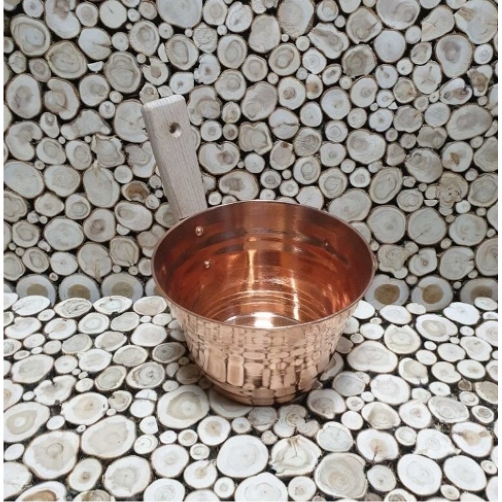 Ушат МАЛЫЙ 3л - Отличным дополнением к интерьеру вашей бани станет большой ушат из меди с деревянной ручкой, надежно защищающей от случайных ожогов. Ушат практичен и долговечен. К тому же начищенная медь приятно отсвечивает в полутемном помещении, делая баню еще более уютной.