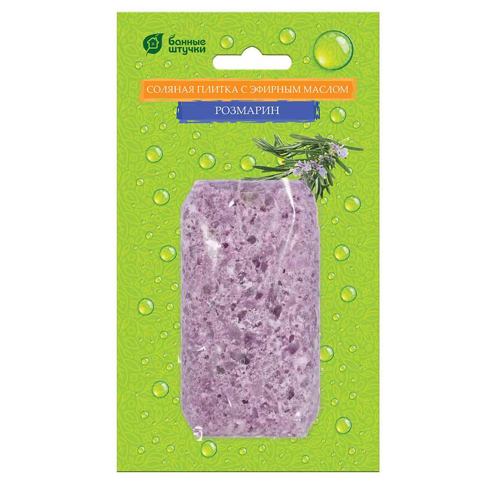 Способ применения: Плитку необходимо положить на печь среди камней и раскалить до температуры 200-400 °С. Затем на камни и плитку поддать горячей воды, благодаря чему парная наполнится ароматом розмарина и ионами соли.