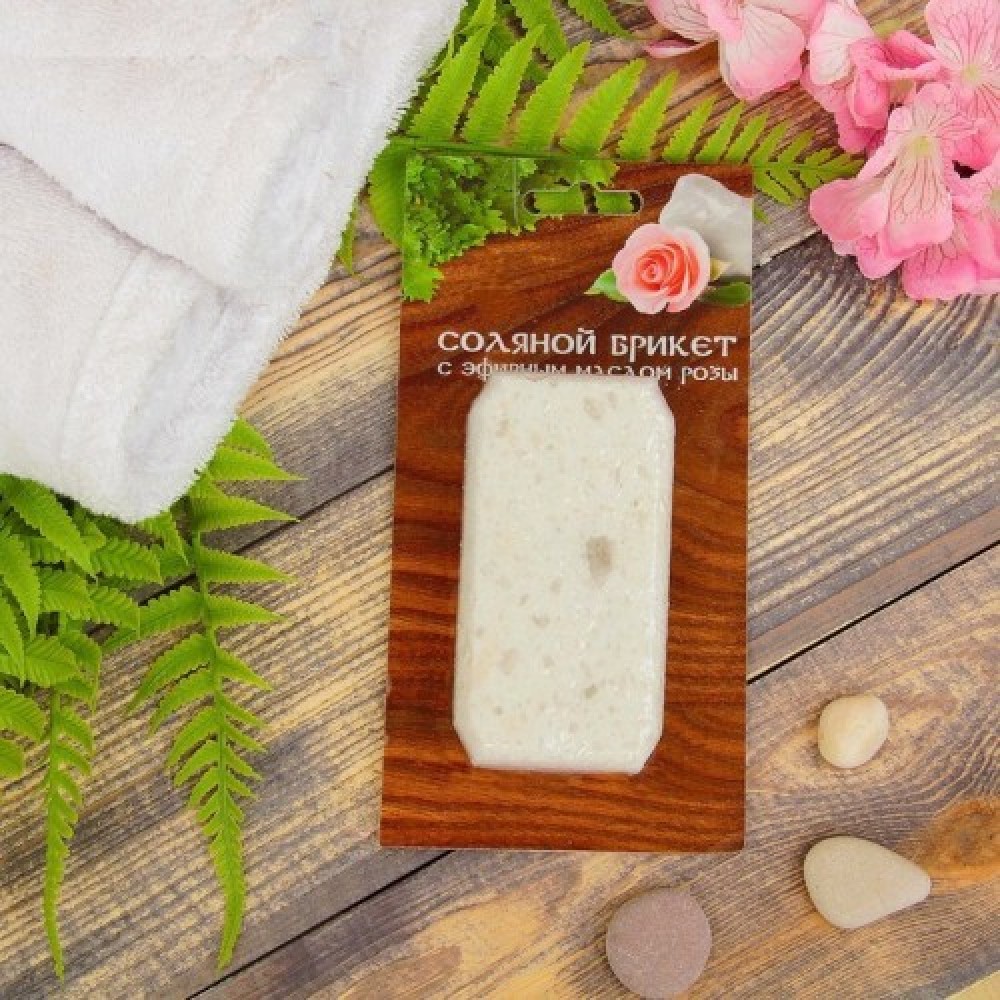 Соляной брикет «Соляная баня» Мини с эфирным маслом Роза вес 0,2 кг для бани