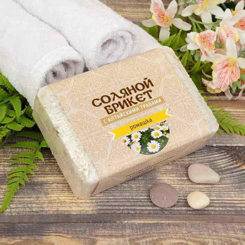 Соляной брикет , "Соляная баня" с Алтайскими травами "Ромашка" вес 1,35 кг для бани