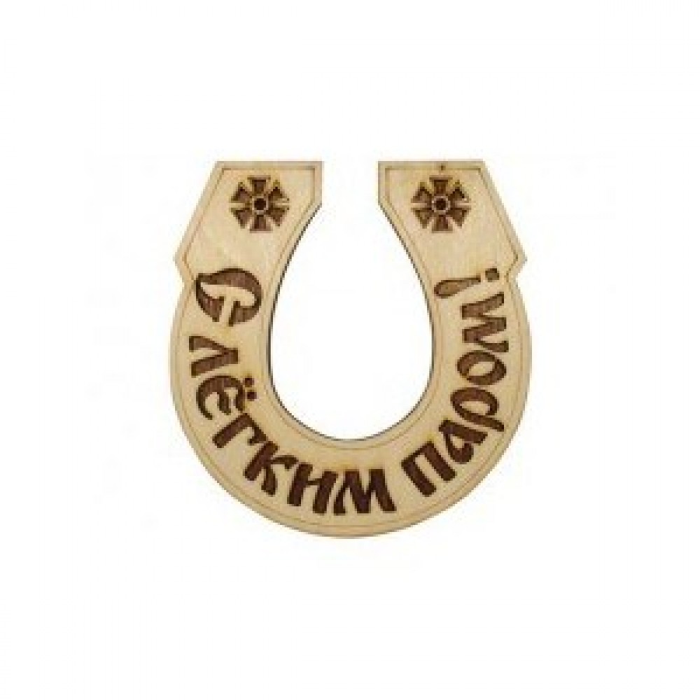 Банная табличка "Подкова-С легким паром" поможет подчеркнуть неповторимый колорит традиционной русской бани, создать теплую душевную атмосферу и хорошее настроение посетителям.
