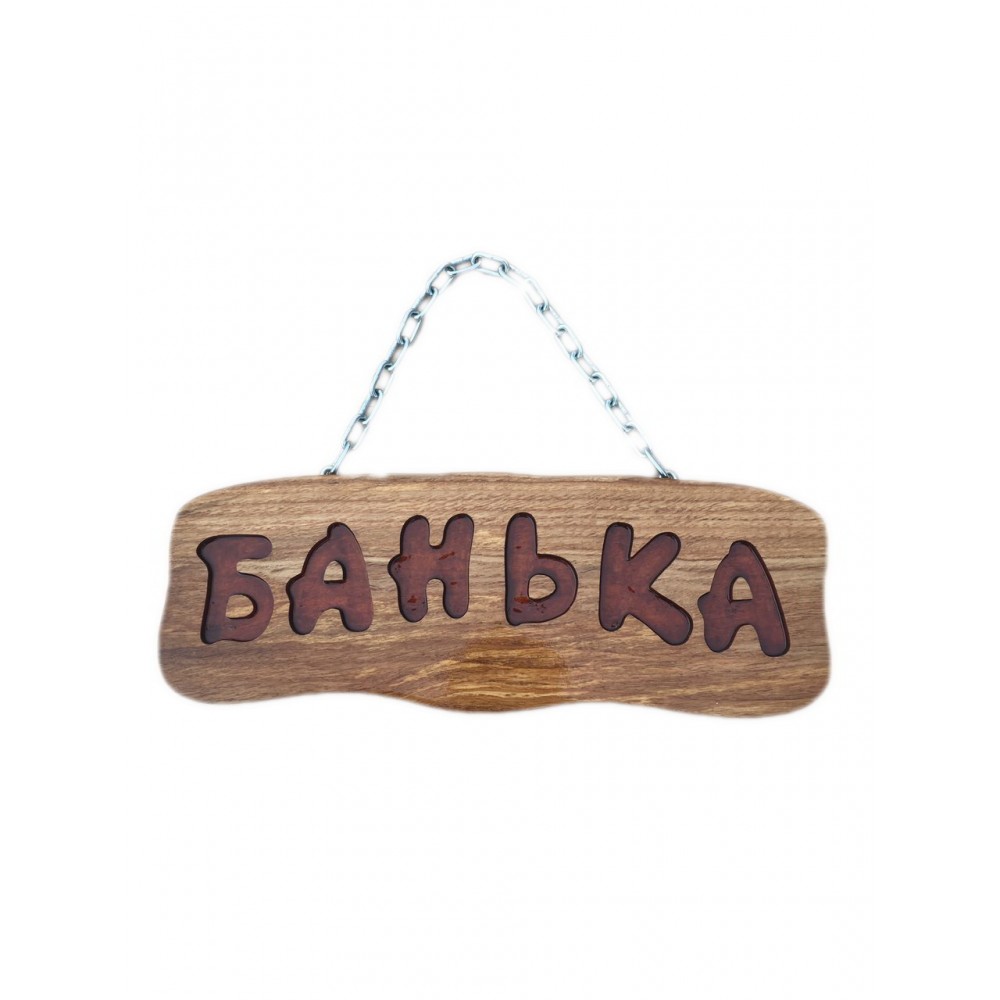 Табличка "Банька" из мореного дуба на цепочке отлично подойдет в любой банный интерьер.