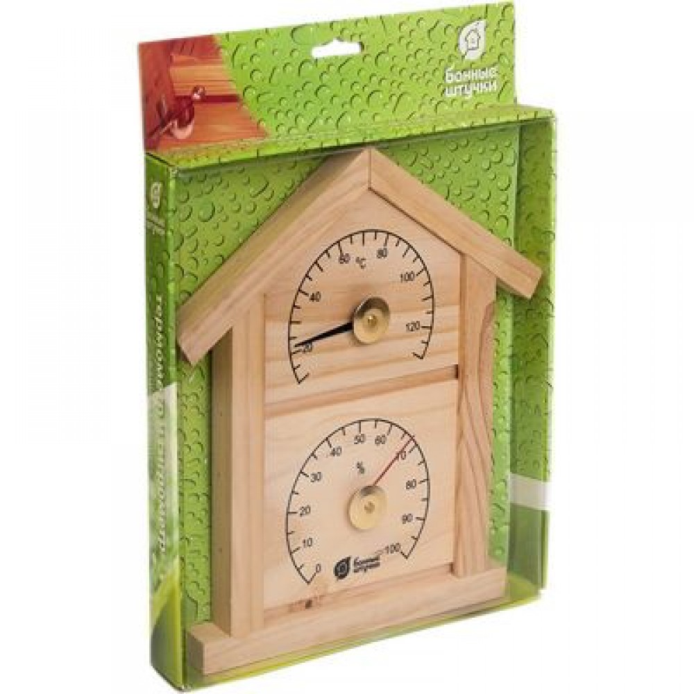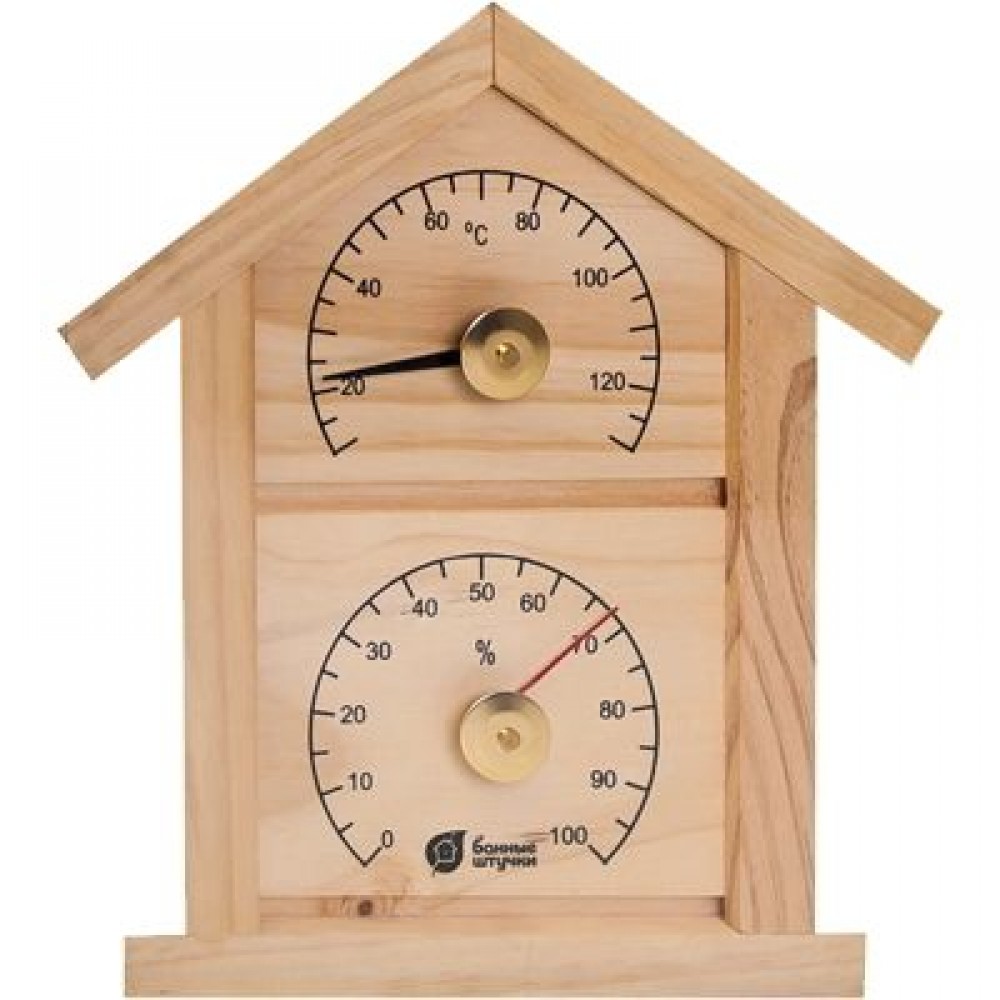 Термометр и гигрометр (банная станция) "Домик" для бани и сауны Банные Штучки арт.18023 – выполнен из дерева и позволяет следить за температурой и влажностью в парном помещении. Максимальная измеряемая температура — 130 градусов, влажность — 100%.