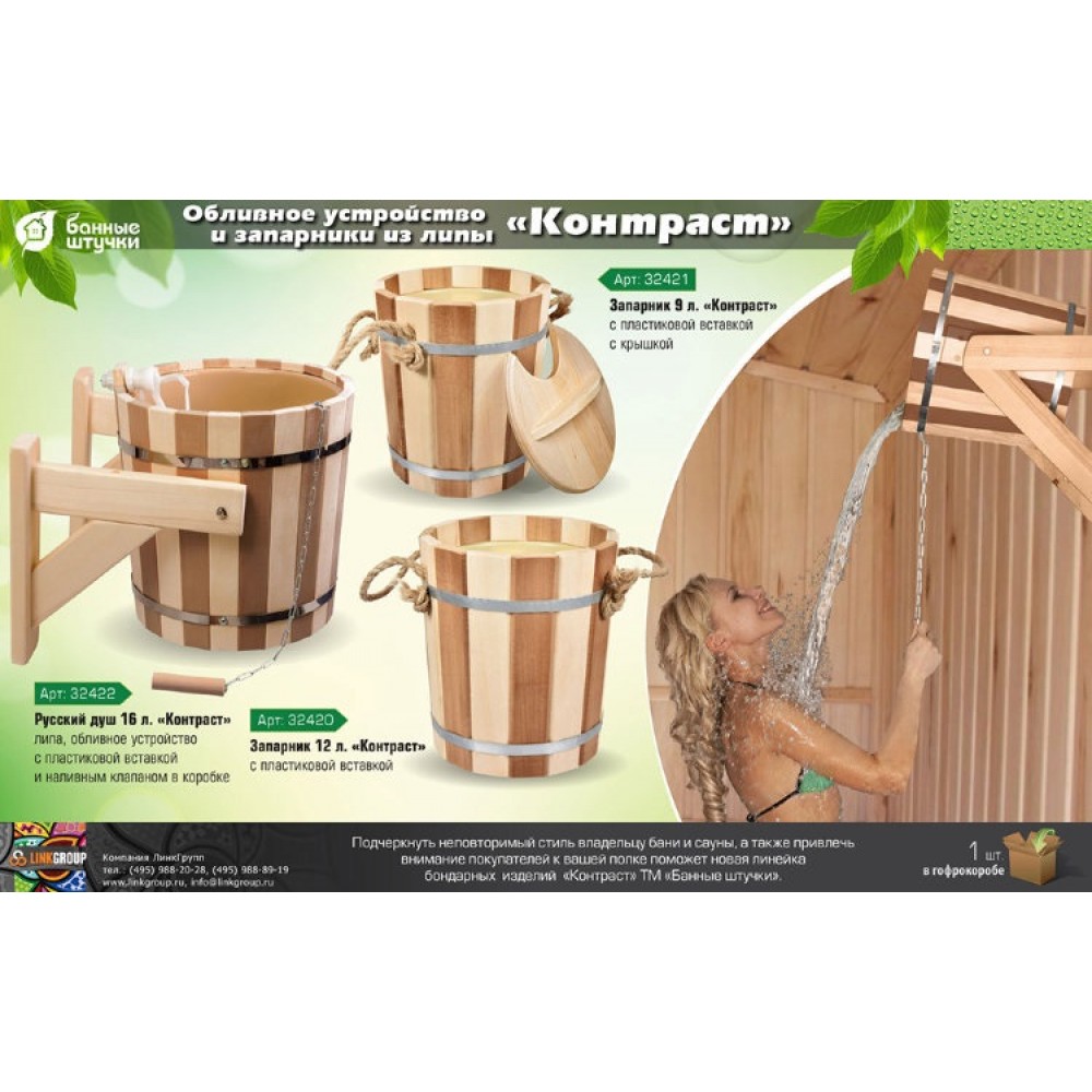 Описание: Бондарные изделия выполненные из липы, прослужат многие годы. Древесина липы является основным материалом при изготовлении бондарных изделий, поскольку она не только обладает уникальными целебными свойствами, но и способна сохранять комфортную температуру в самой жаркой парной.