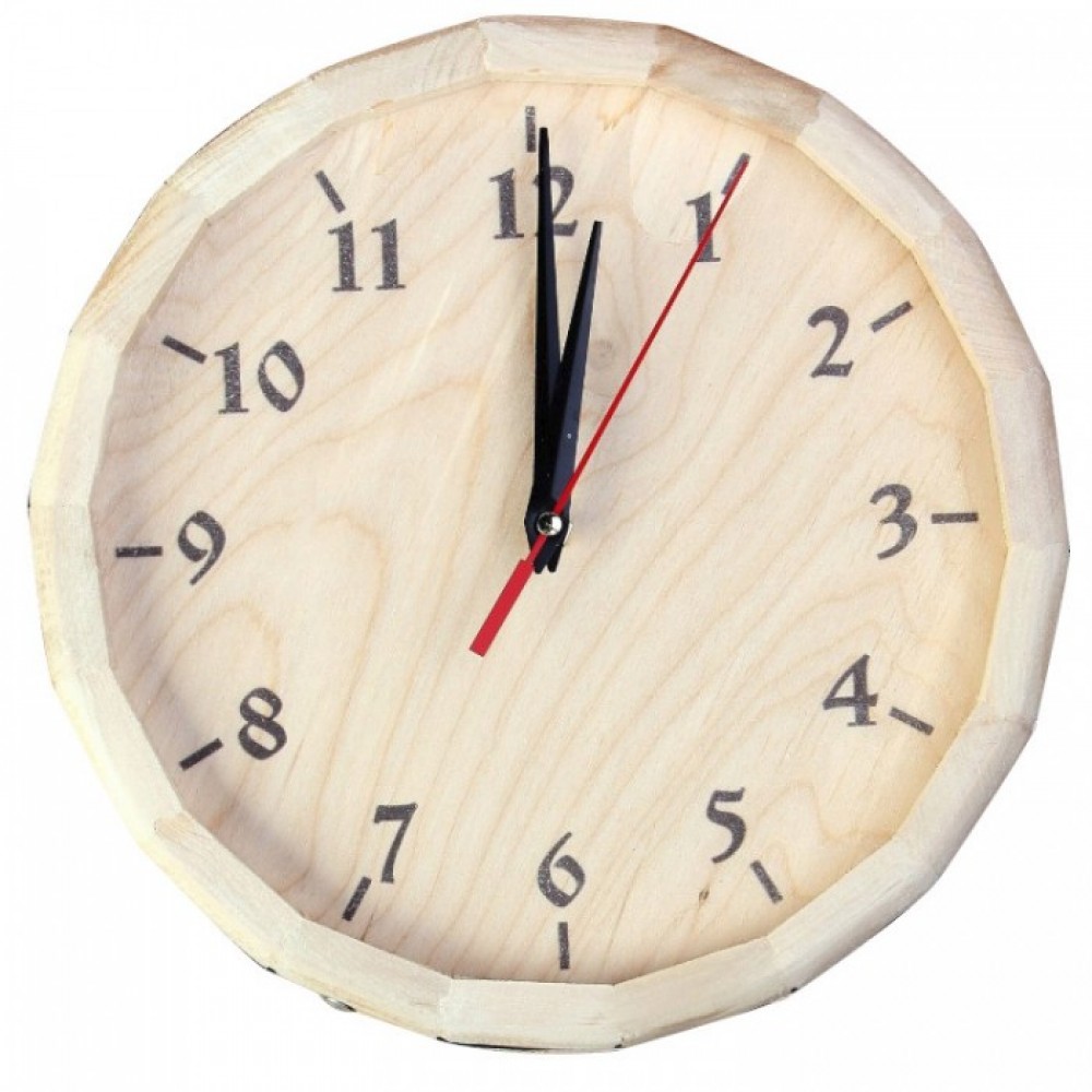 Настенные часы Бочонок, что выполнены в форме небольшого бочонка. Повесив в своей бане или сауне такие часы, вы не только сможете контролировать свое время пребывания в парилке, но и стильно украсить интерьер. К слову сказать, эта модель часов отлично впишется в любой интерьер. Часы изготовлены из дерева липы, которое отлично справляется с перепадами температур и повышенной влажностью, свойственным для бани. Часовой механизм также надежно защищен от повреждений деревянным корпусом. Вы можете не сомневаться, что такие часы прослужат вам долгое время. И не стоит забывать, что за временем в бане нужно следить, дабы избежать возможного перегрева организма.