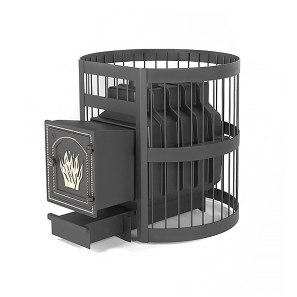 Банная чугунная печь Легенда Ретро 24 Стандарт (ДТ-4) укомплектована чугунной не герметичной дверцей Везувий ДТ-4. Конвекционно-вентилируемый кожух "Стандарт" изготовлен из металлического прутка диаметром 6мм покрашенной черной термостойкой краской.