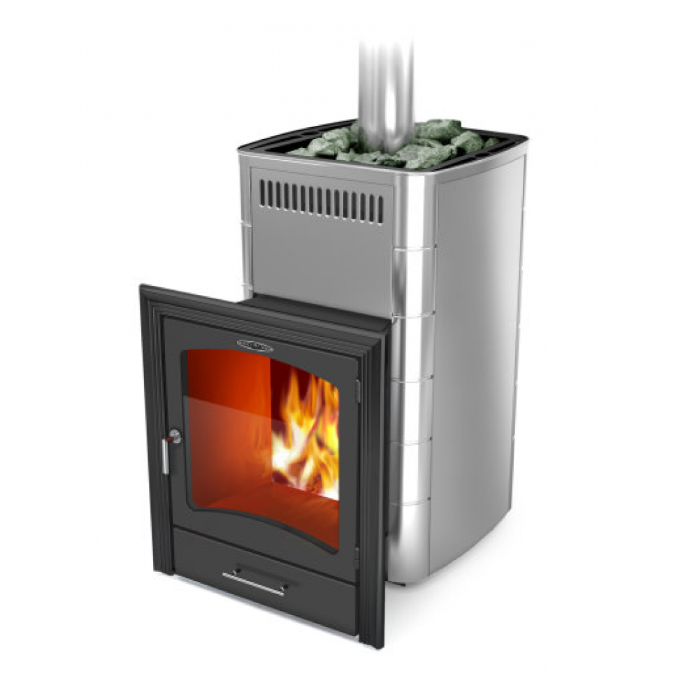 | Особенности: | Модификация с большим светопрозрачным экраном, нержавеющими вставками, передняя рамка цвета антрацит; открытая каменка |
