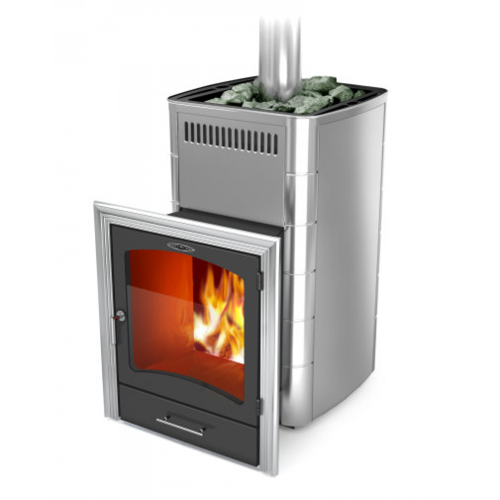 | Особенности: | Модификация с большим светопрозрачным экраном, нержавеющими вставками, передняя рамка цвета антрацит; открытая каменка |