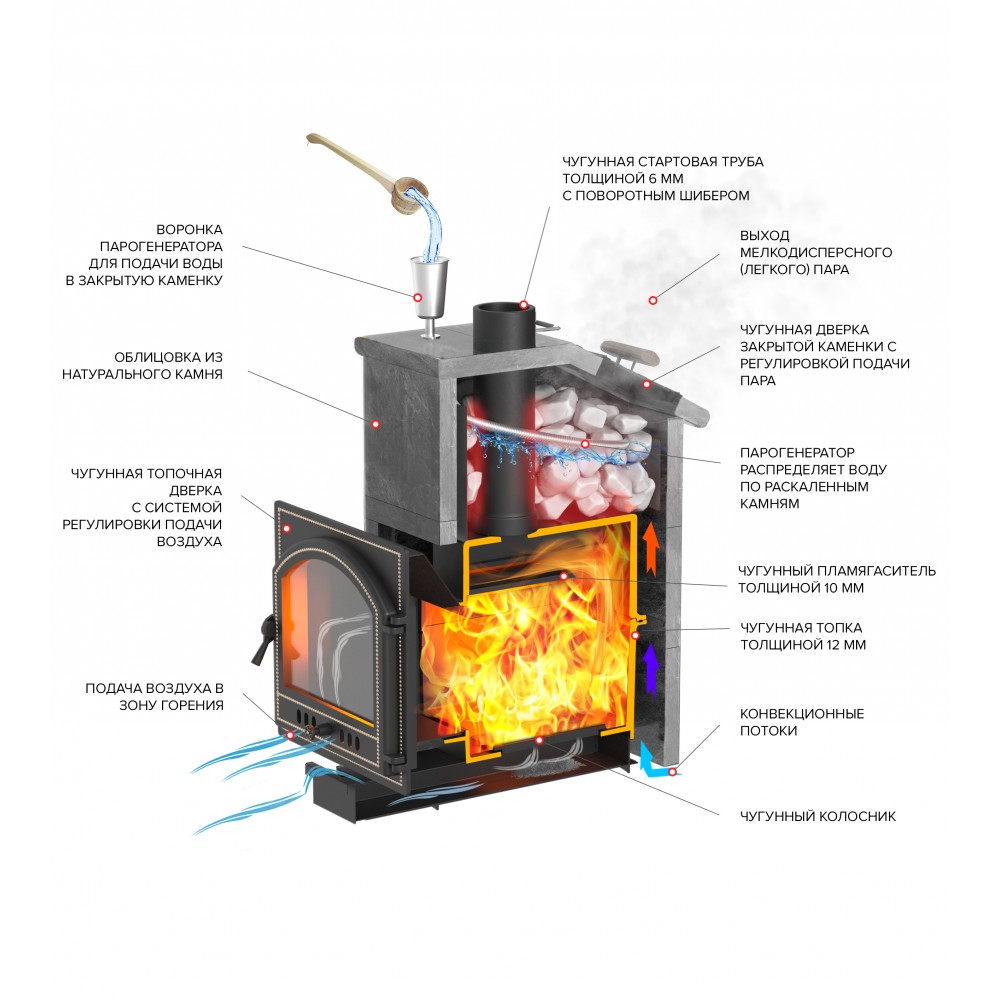 | Материал | Топка - Чугун, Облицовка -Талькохлорит |
