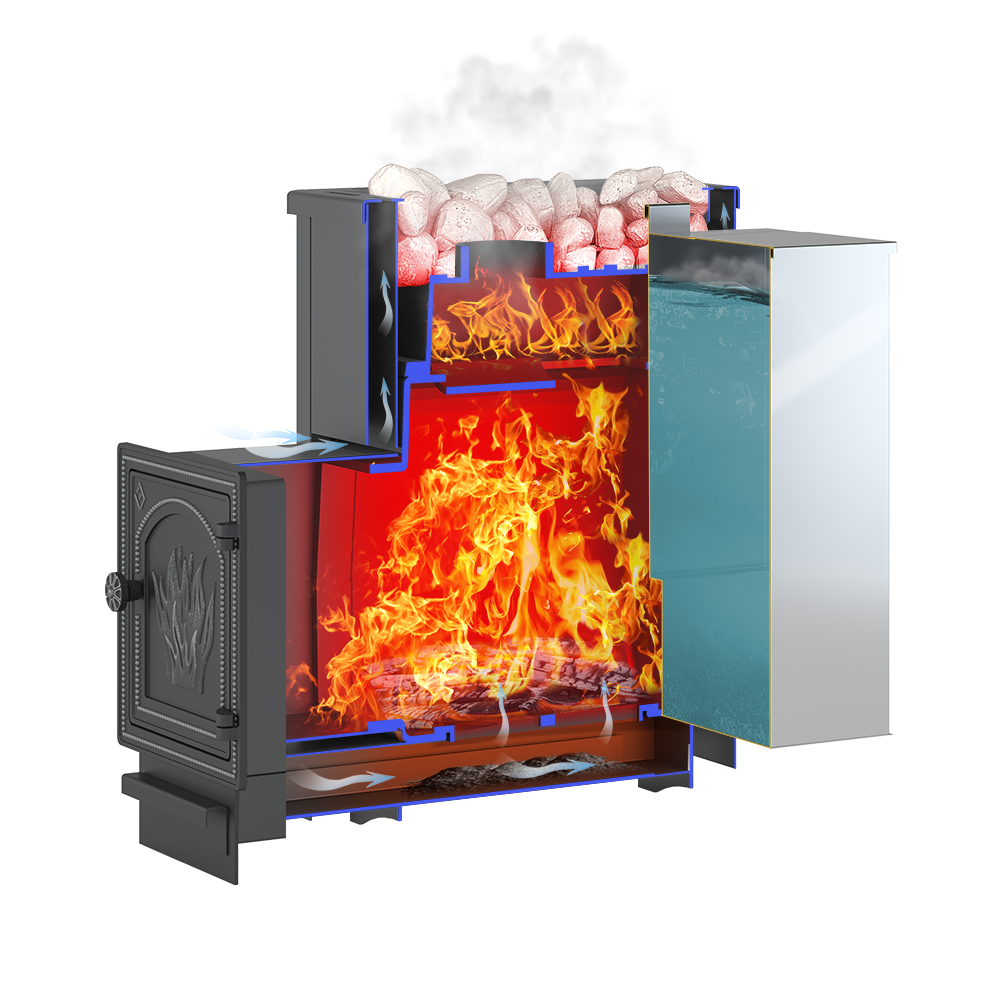 Преимущество печи для бани Везувий Сенсация "АКВА" 16 (ДТ-4) в том, что топка печи состоит из 3-х элементов. На стыке между ними используется керамический шнур с рабочей температурой 1200 градусов. То есть топка печи абсолютно герметична! Для фиксации деталей между собой применяется болтовое соединение, что даёт 100% гарантию безопасности при эксплуатации.