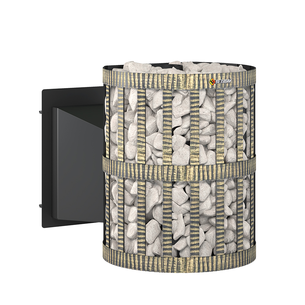 Чугунный пламегаситель перенаправляет поток горячего воздуха и дымовых газов к задней части топки. Это позволяет снять с печи максимум энергии в единицу времени. Чугунная дверь при нагревании не деформируется, сохраняет свою форму при остывании и предотвращает попадание продуктов горения на пол перед топкой. Печи Везувий СКИФ оснащаются сетками для камней. Сетки могут быть сделаны из металлического прутка или кованой стальной ленты шириной 40 мм. В сетки по всей высоте укладываются камни для бани, обеспечивая большой объём заклада и длительное удержание тепла после прогрева каменки.