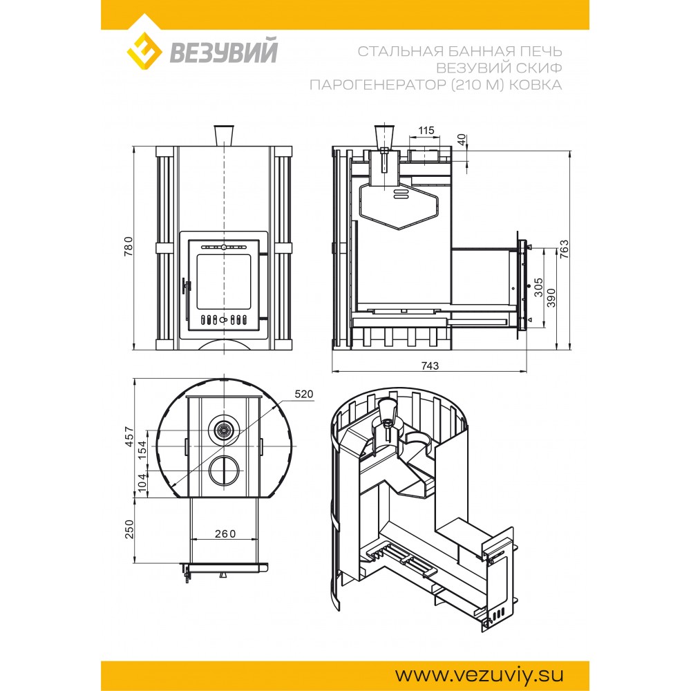 Стальная банная печь ВЕЗУВИЙ Скиф Парогенератор Ковка (210) "М" предназначена для прогрева парного помещения в бане и поддержания необходимой температуры во время парения. Печь СКИФ оборудована открытой каменкой, закладываемой камнями для бани (приобретаются отдельно).