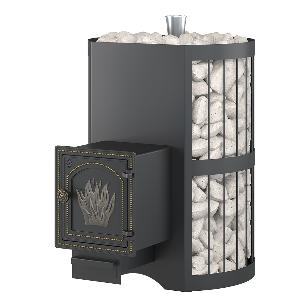 Получившийся мелкодисперсный пар выходит через пароконвекторные каналы на боковых поверхностях топки. Выйдя через щелевые отверстия, пар по П-образному профилю направляется вверх, на камни открытой каменки.