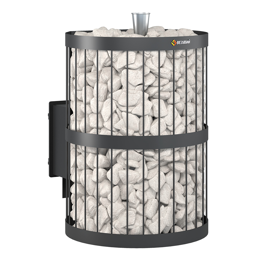 В сетку по всей высоте укладываются камни для бани, обеспечивая большой объём заклада и длительное удержание тепла после прогрева каменки.