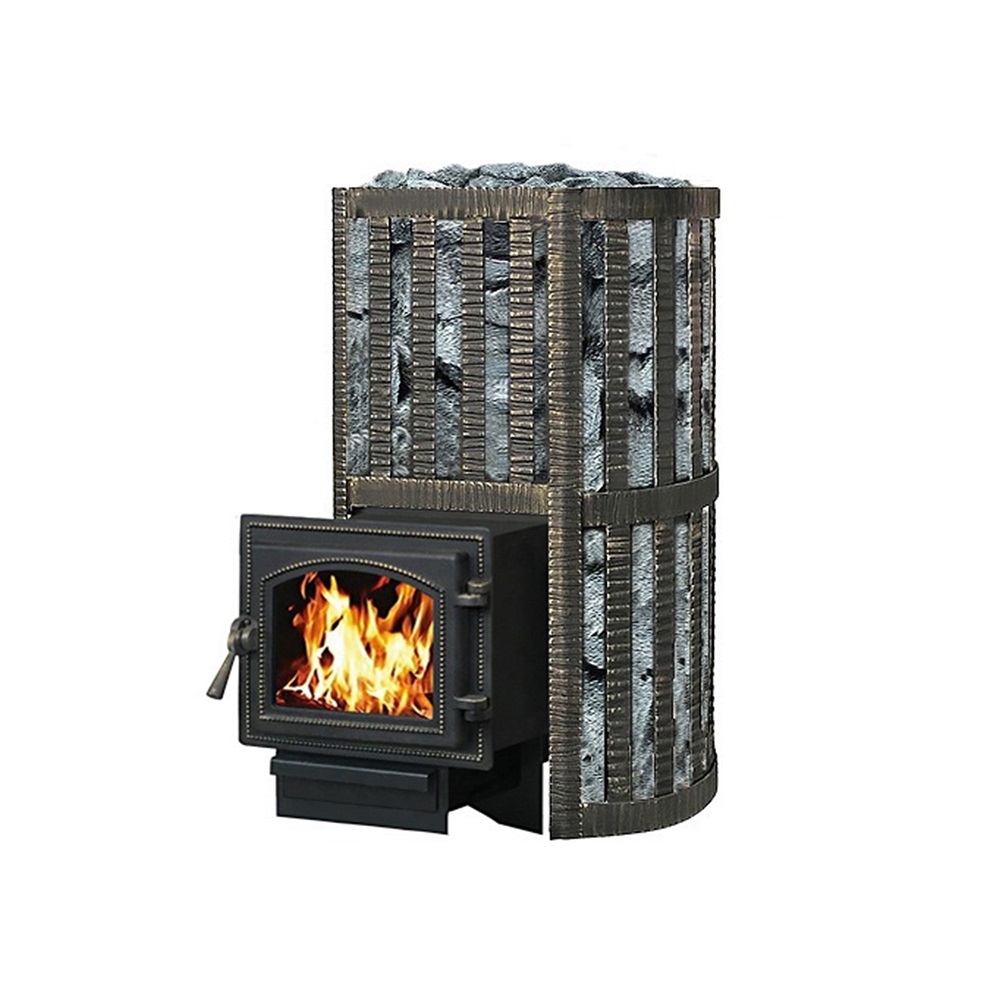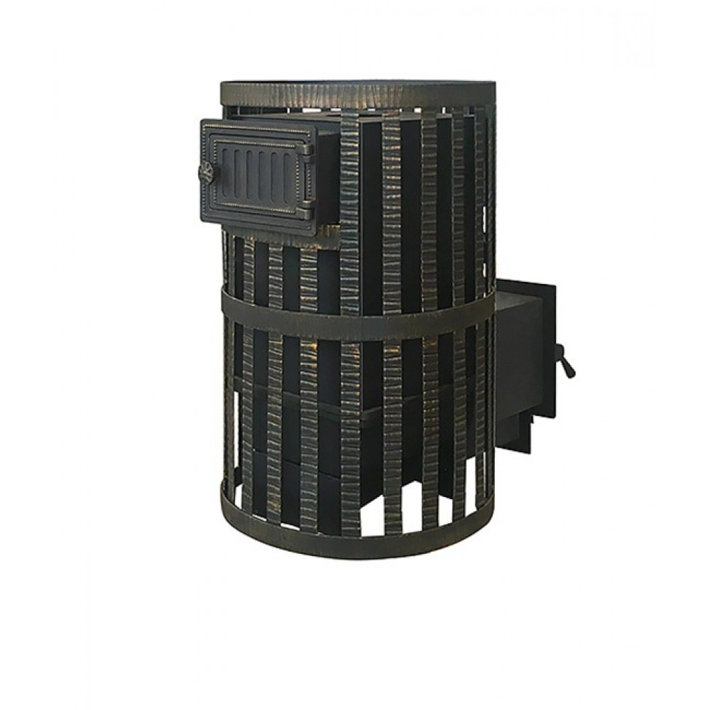 Банная чугунная печь Ураган Ковка 12 (260) укомплектована чугунной герметичной дверцей Везувий 260. Закрытая каменка изготовлена из стали. Конвекционно-вентилируемый кожух "Ковка" изготовлен из металлической текстурированной полосы покрашенной термостойкой краской и покрытая патиной «Бронза».