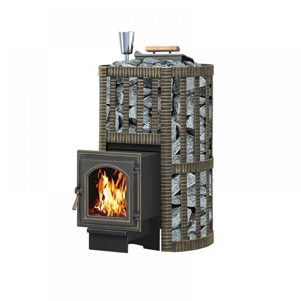 Банная чугунная печь Ураган Ковка 16 (270) укомплектована чугунной герметичной дверцей Везувий 270 с жаропрочным стеклом «SCHOTT ROBAX». Закрытая каменка изготовлена из стали и вмещает в себя не менее 60кг камней. Конвекционно-вентилируемый кожух "Ковка" изготовлен из металлической текстурированной полосы покрашенной термостойкой краской и покрытая патиной «Бронза».
