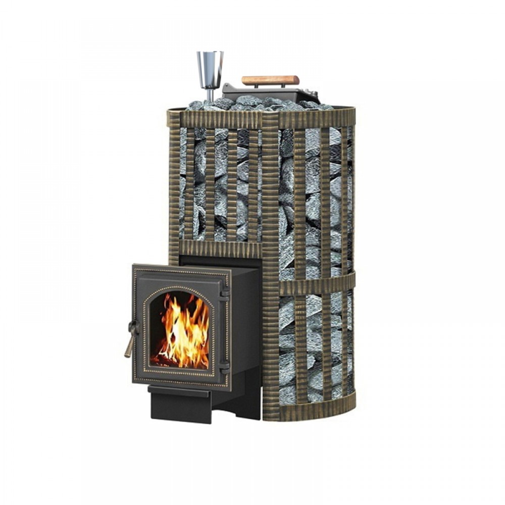 Банная чугунная печь Ураган Ковка 22 (270) укомплектована чугунной герметичной дверцей Везувий 270 с жаропрочным стеклом «SCHOTT ROBAX». Закрытая каменка изготовлена из стали и вмещает в себя не менее 60кг камней. Конвекционно-вентилируемый кожух "Ковка" изготовлен из металлической текстурированной полосы покрашенной термостойкой краской и покрытая патиной «Бронза».
