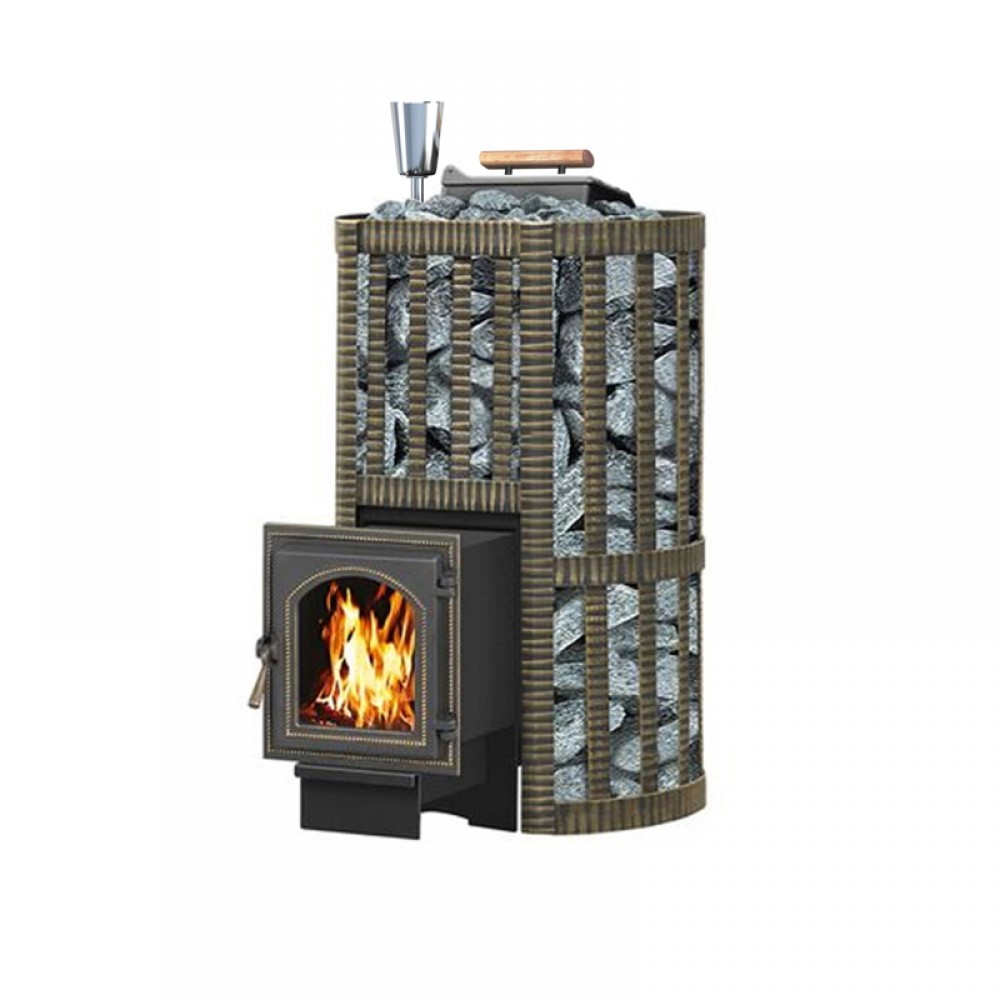 Банная чугунная печь Ураган Ковка 28 (270) укомплектована чугунной герметичной дверцей Везувий 270. Закрытая каменка изготовлена из стали и вмещает в себя не менее 60кг камней. Конвекционно-вентилируемый кожух "Ковка" изготовлен из металлической текстурированной полосы покрашенной термостойкой краской и покрытая патиной «Бронза».