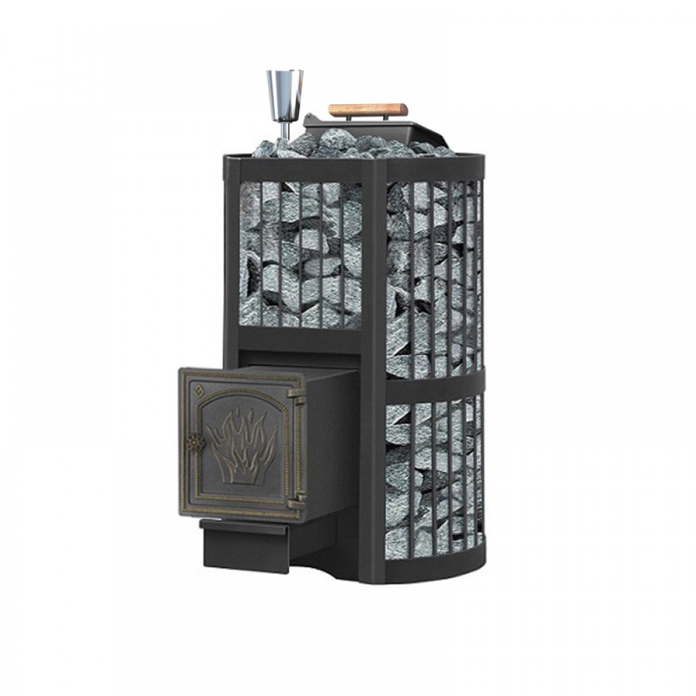 Банная чугунная печь Ураган Стандарт 28 (ДТ-4) укомплектована чугунной не герметичной дверцей Везувий ДТ-4. Закрытая каменка изготовлена из стали и вмещает в себя не менее 60кг камней. Конвекционно-вентилируемый кожух "Стандарт" изготовлен из металлического прутка диаметром 6мм покрашенной черной термостойкой краской.