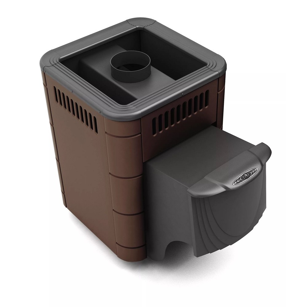 Банная печь Термофор Оса Inox ДА шоколад самая маленькая дровяная банная печь в модельном ряду TMF. При компактных размерах она обладает достаточной мощностью, чтобы быстро и экономично прогревать парилку объемом от 4 до 9 куб. м. Центральное расположение дымохода значительно упрощает монтаж печи. Вентилируемая каменка способствует быстрому нагреву камней.