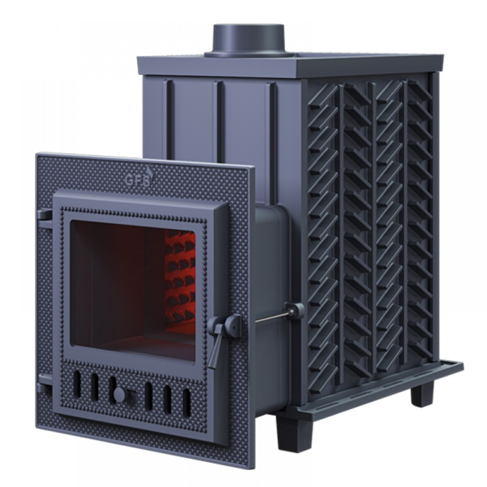 Банная печь GFS ЗК 25 (М) с усиленной каменкой большей массы, с единым углублением внутрь топки для дополнительной укладки чугунного заряда.