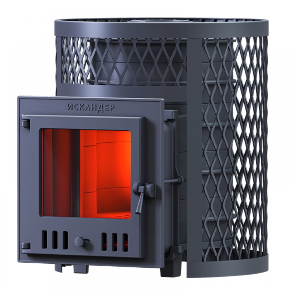 Банная печь Искандер 25 (M) в сетке с прямым нагревом парообразователя.