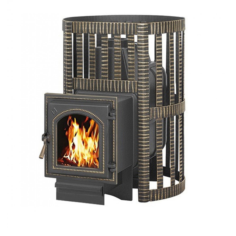 Банная чугунная печь Легенда Ковка 28 (270) укомплектована чугунной герметичной дверцей Везувий 270 с жаропрочным стеклом «SCHOTT ROBAX». Конвекционно-вентилируемый кожух "Ковка" изготовлен из металлической текстурированной полосы покрашенной термостойкой краской и покрытая патиной «Бронза».
